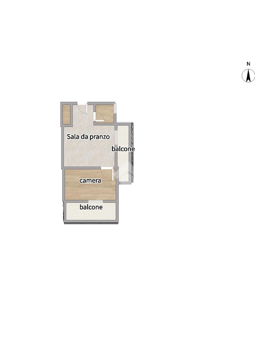 Entrando veniamo accolti dalla zona giorno composta dal soggiorno angolo cottura con affaccio sul primo balcone. Bagno finestrato e camera da letto matrimoniale con affaccio sul secondo balcone.