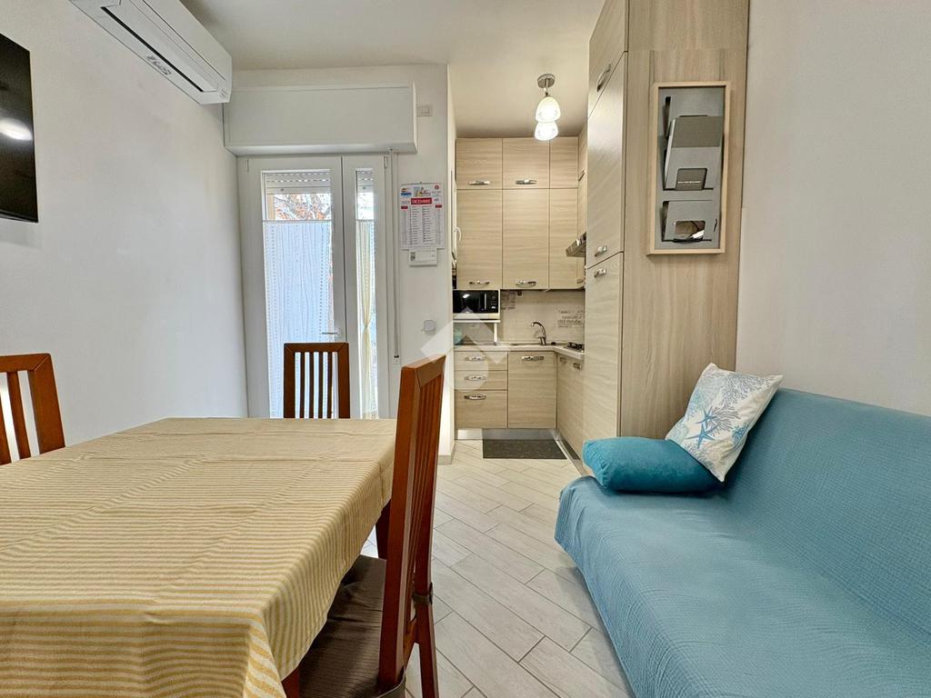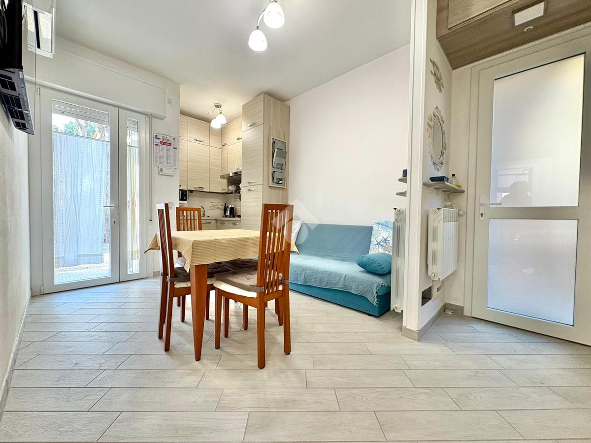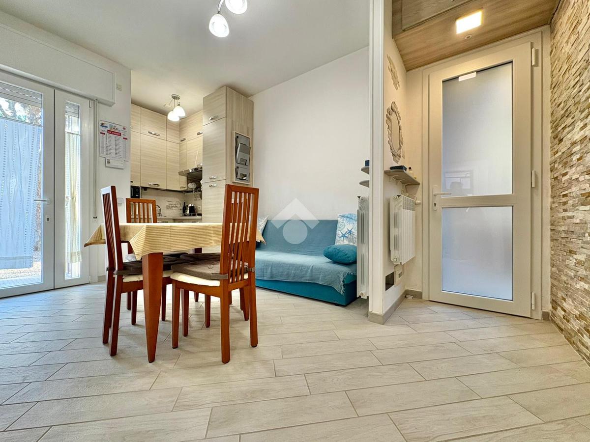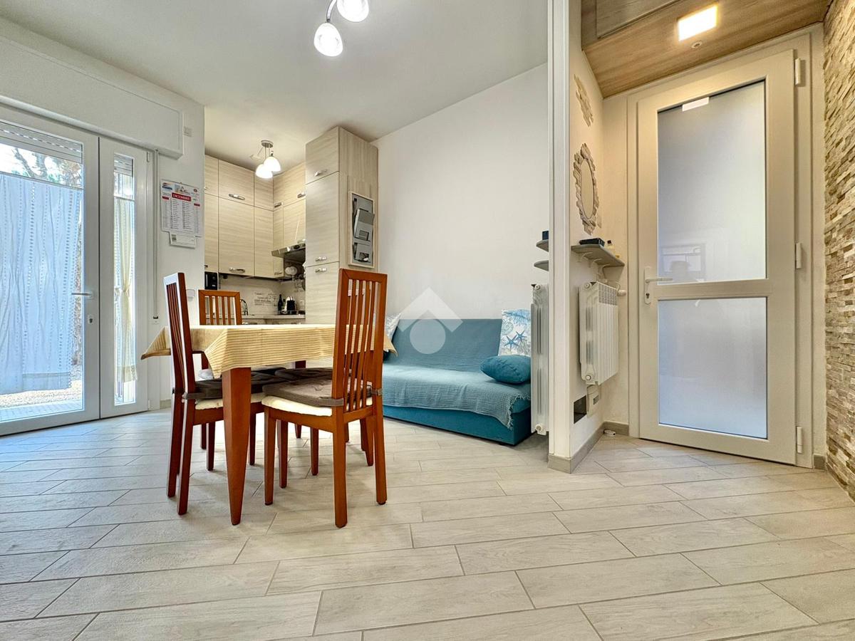 A circa 400 mt. dalla spiaggia, proponiamo in vendita un appartamento situato al piano terra di una palazzina con poche unità abitative. L'immobile è stato completamente ristrutturato nel 2020 offrendo un ambiente moderno e funzionale in ogni suo dettaglio.