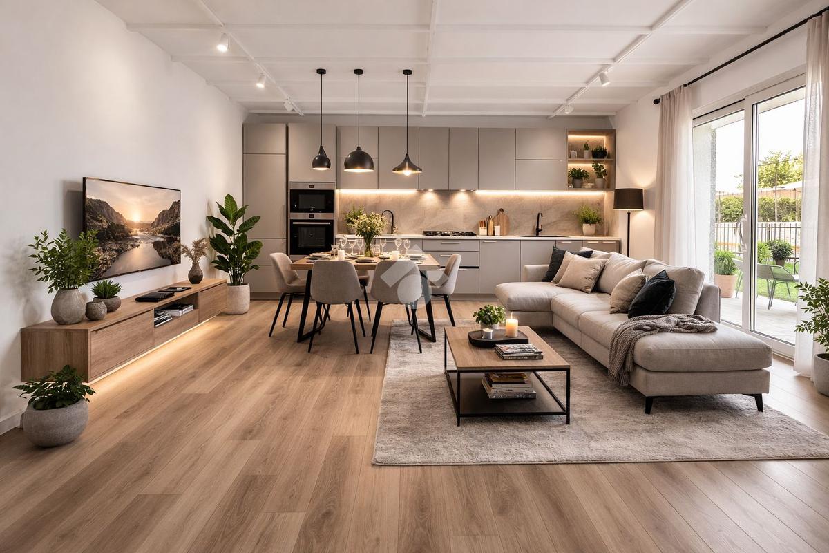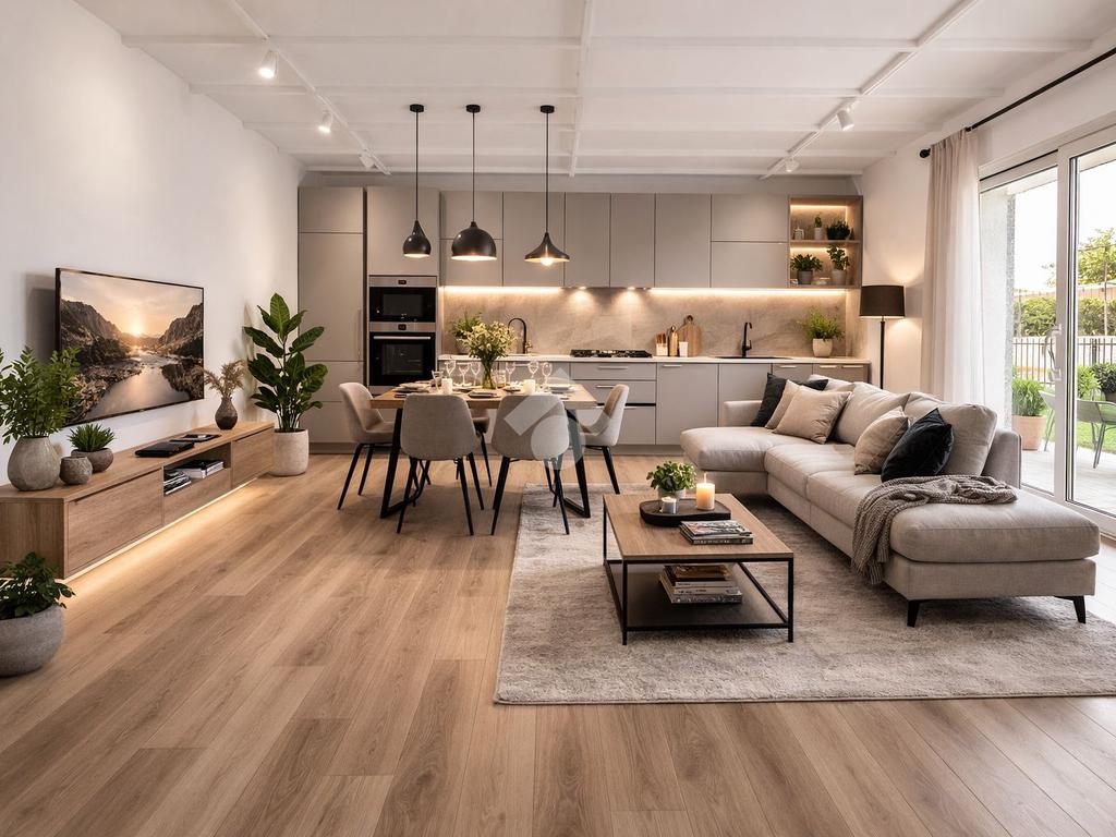 Entrando troviamo un open space dove ci accoglie un ampio soggiorno con angolo cottura di circa 30 mq, perfetto per chi ama gli spazi aperti e luminosi. La zona notte comprende due camere da letto matrimoniali, pensate per garantire comfort e tranquillità. Bagno finestrato e dotato di box doccia e attacco per la lavatrice.